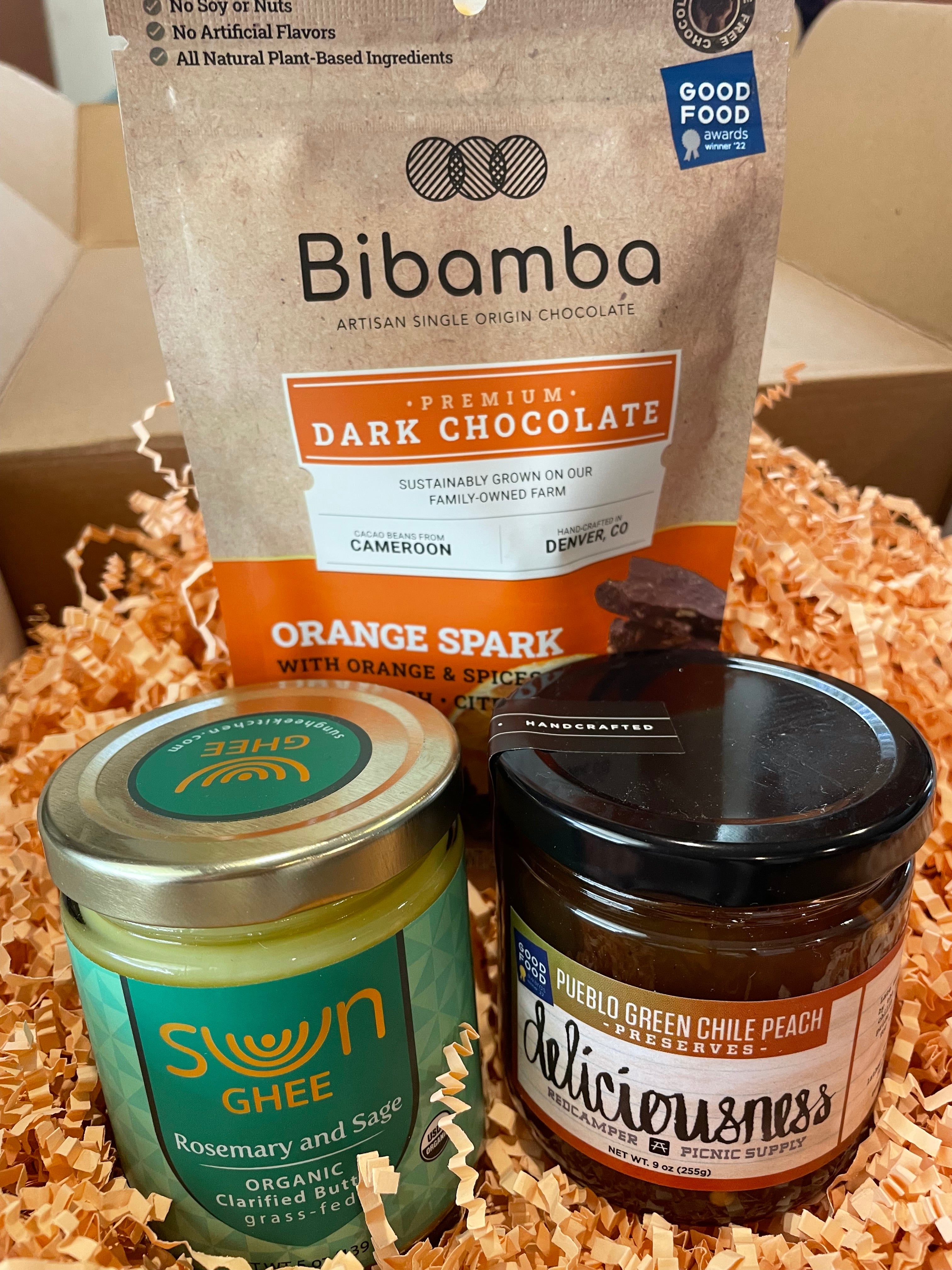 Sun Ghee Rosemary & Sage · Bibamba Chocolate · Red Camper Pueblo Green Chili Peach Jam