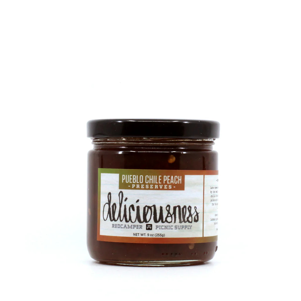- ingredients: Paonia Colorado Peaches, cane sugar, roasted Pueblo green chile, non-gmo pectin, lime juice, salt, almond extract, vanilla bean, cinnamon